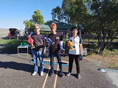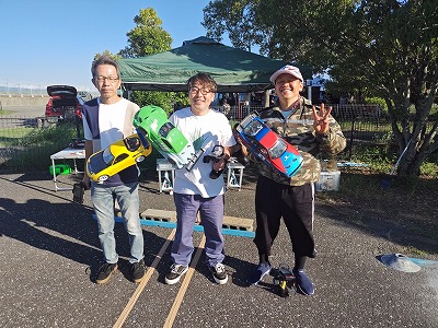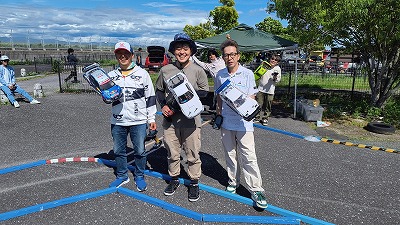 決勝もチャンプ選手が飛び出し、途中順位を落としながらもトップに返り咲き、そのまま逃げ切るかと思われた終盤、何とマシントラブルでまさかのリタイヤとなります。そして、レース中盤に2位に付けていたおおくぼ選手がトップに立ち、そのまま逃げ切ってトップゴールしました。2位には委員長選手が入り、3位にはミスを少なくまとめたじゃこ天選手が入りました。